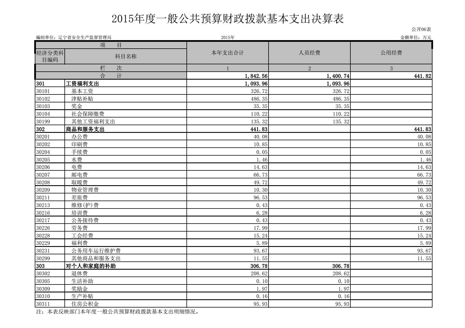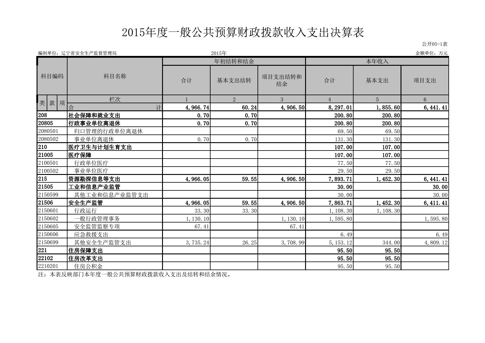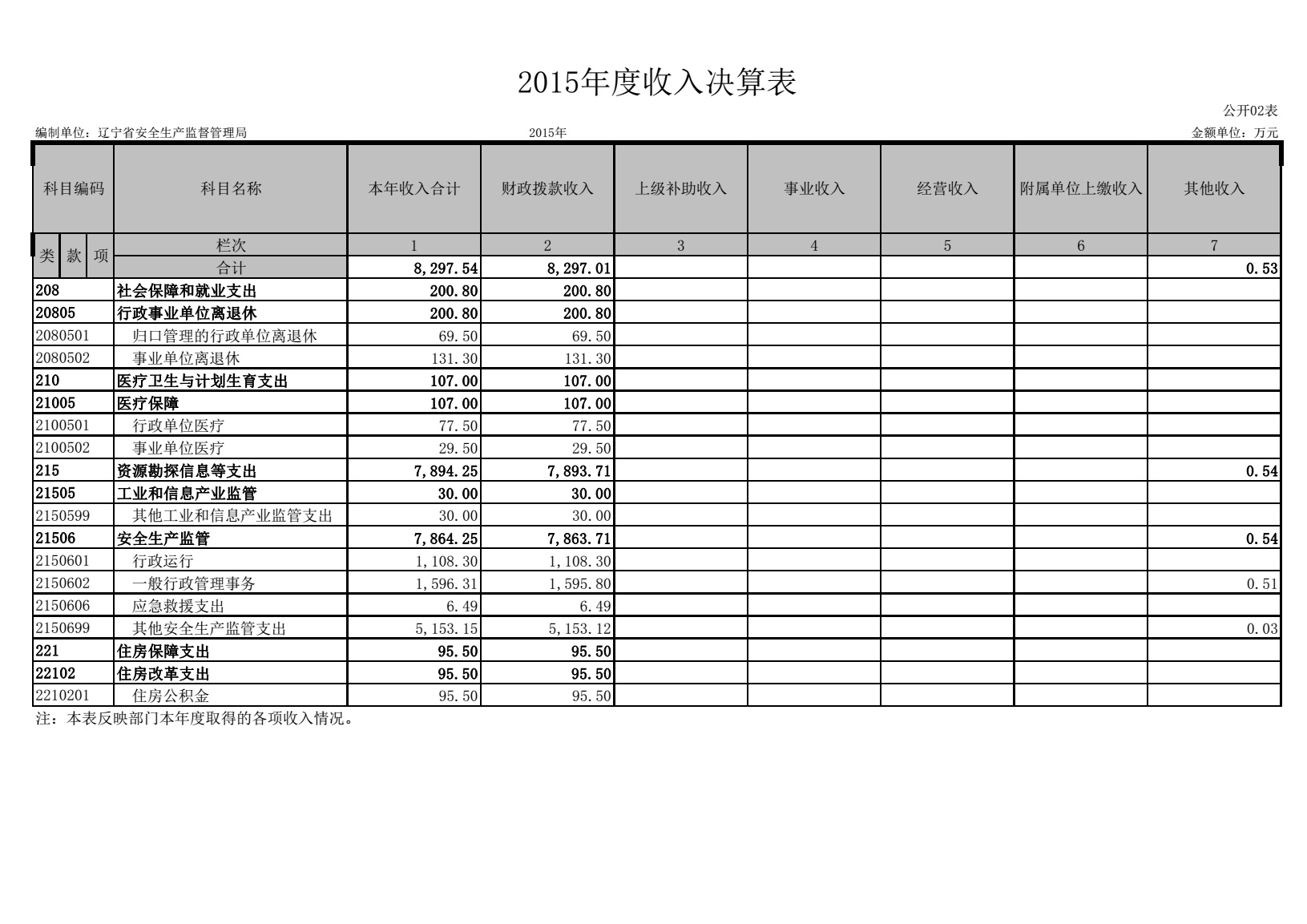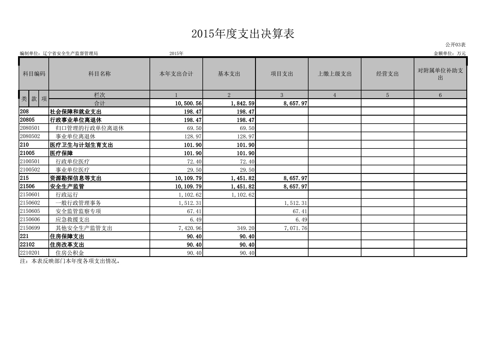 第二部分 辽宁省安全生产监督管理局2015年度部门决算公开报表