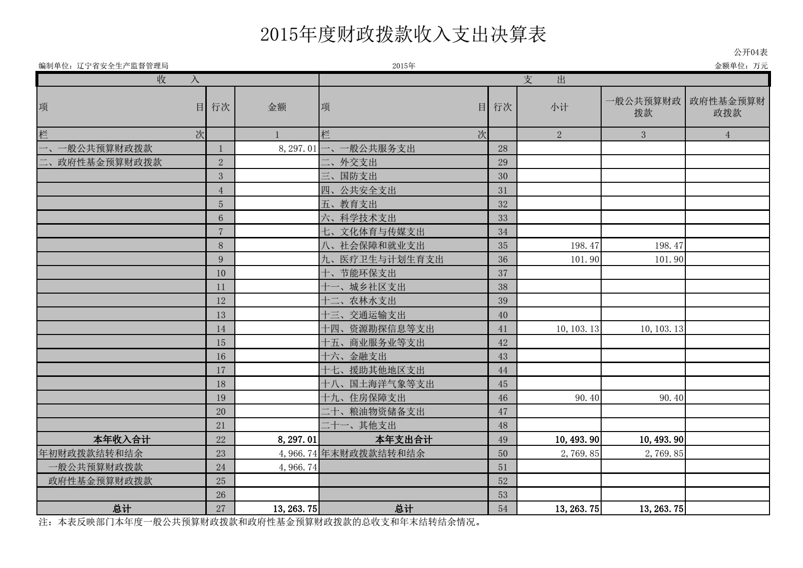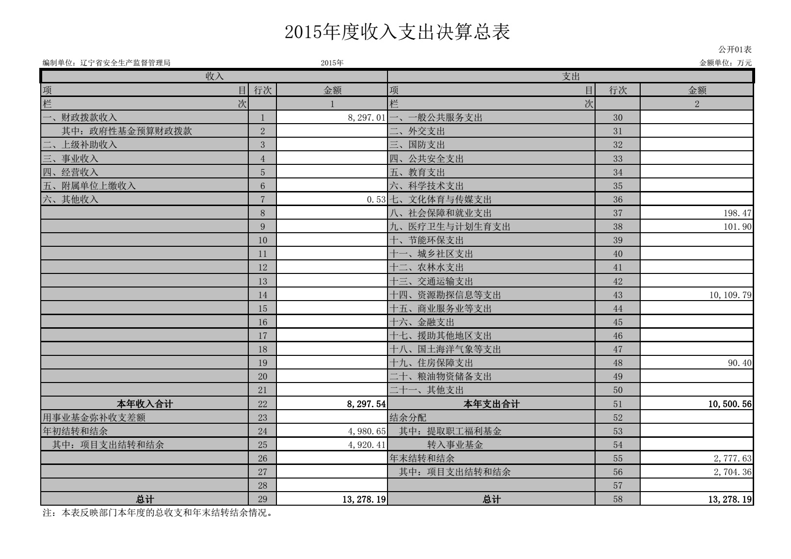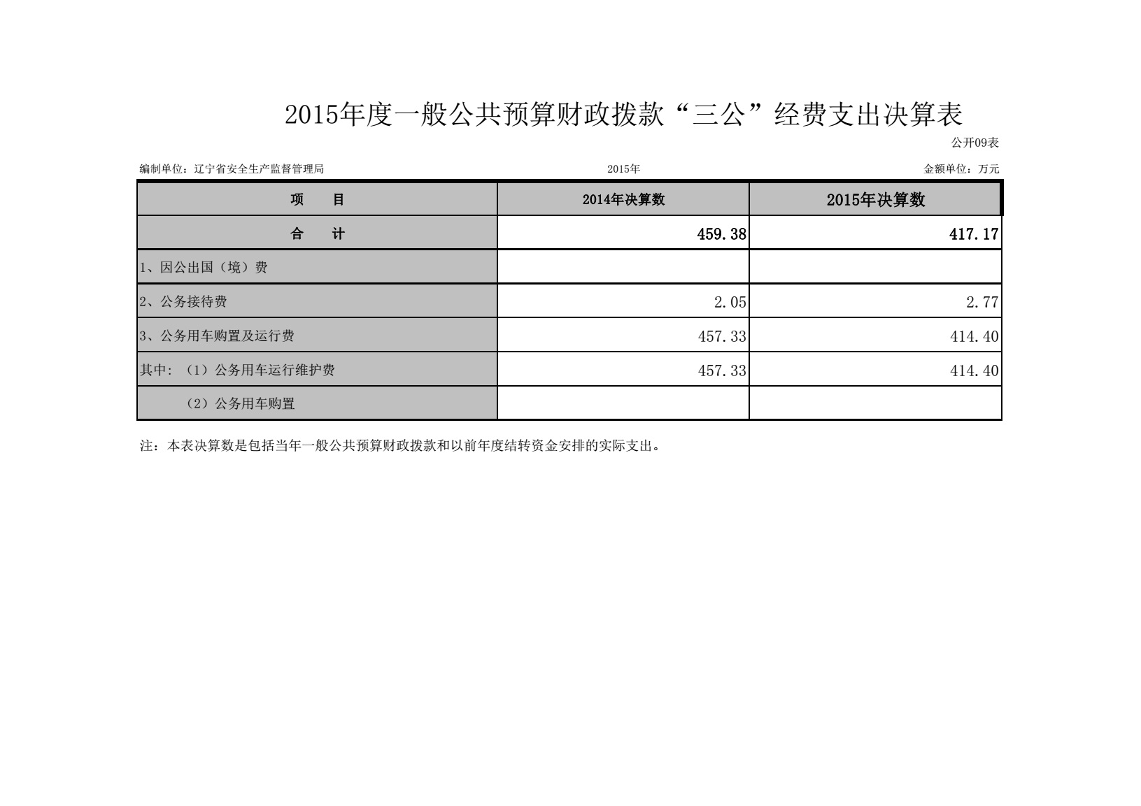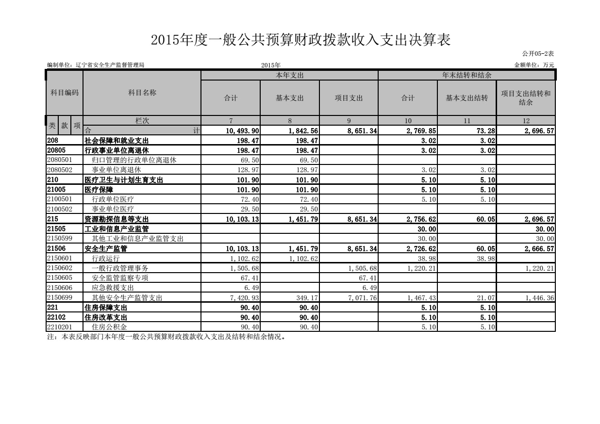 第二部分 辽宁省安全生产监督管理局2015年度部门决算公开报表