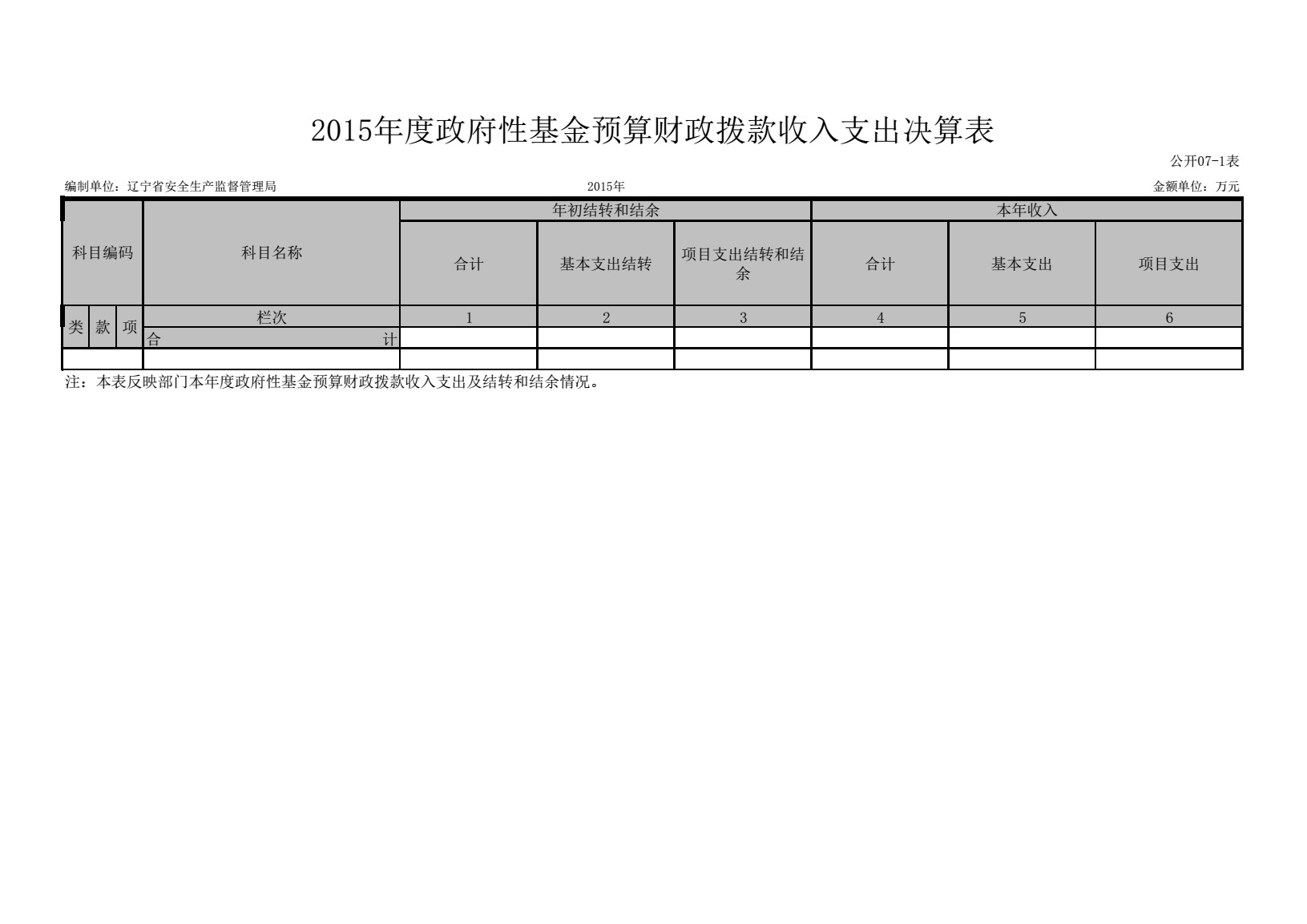 七、2015年度政府性基金预算财政拨款收入支出决算表