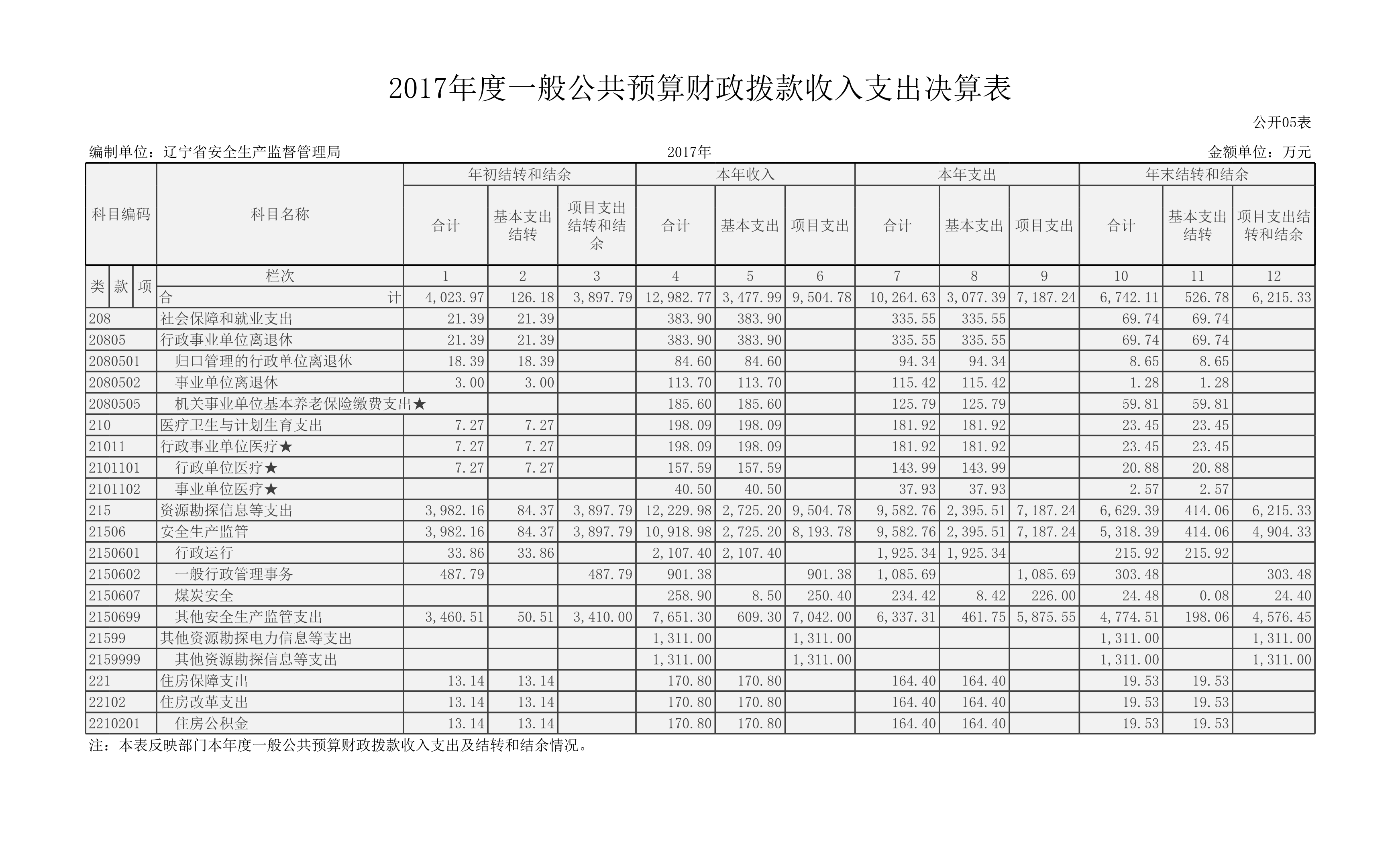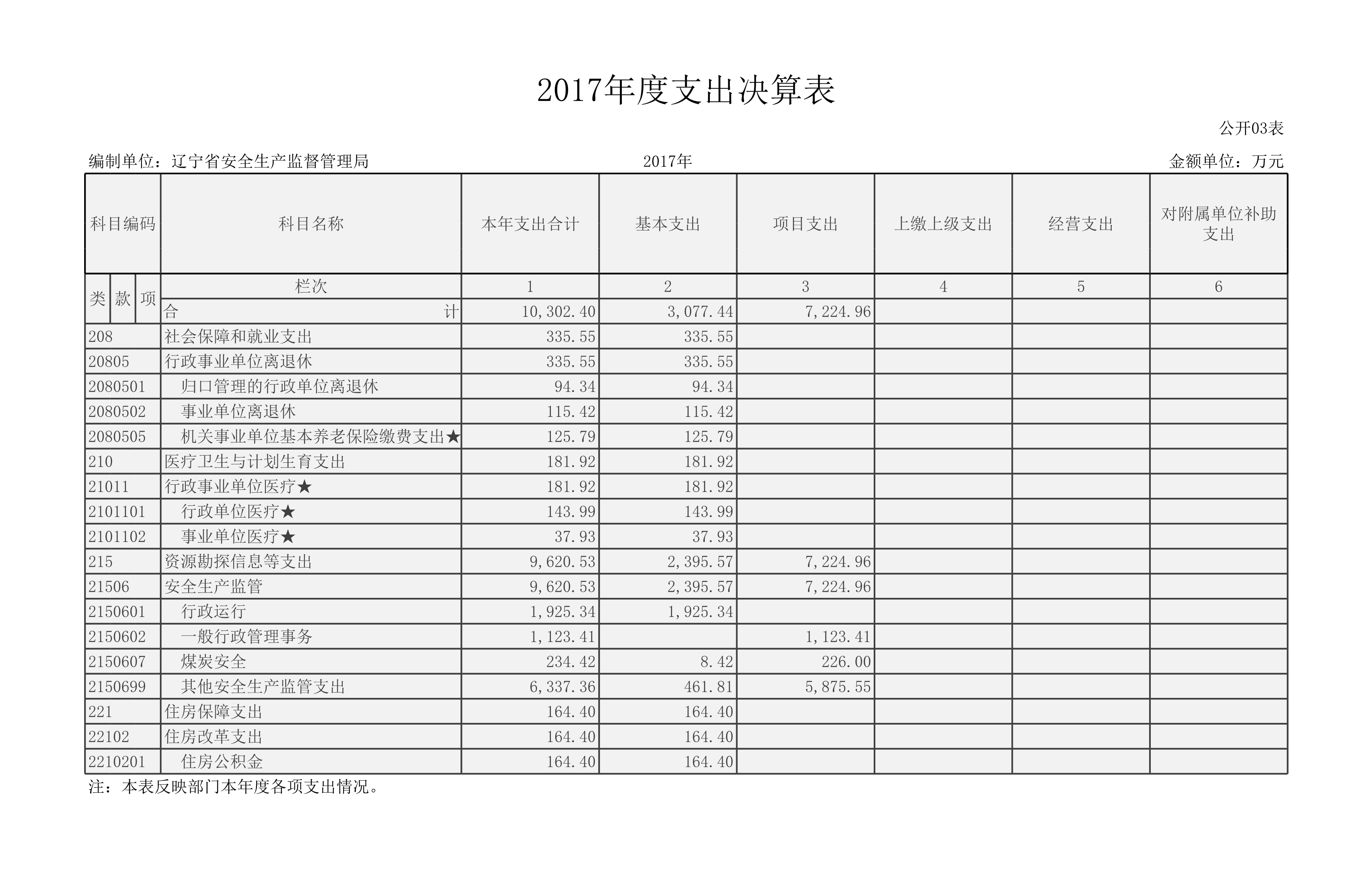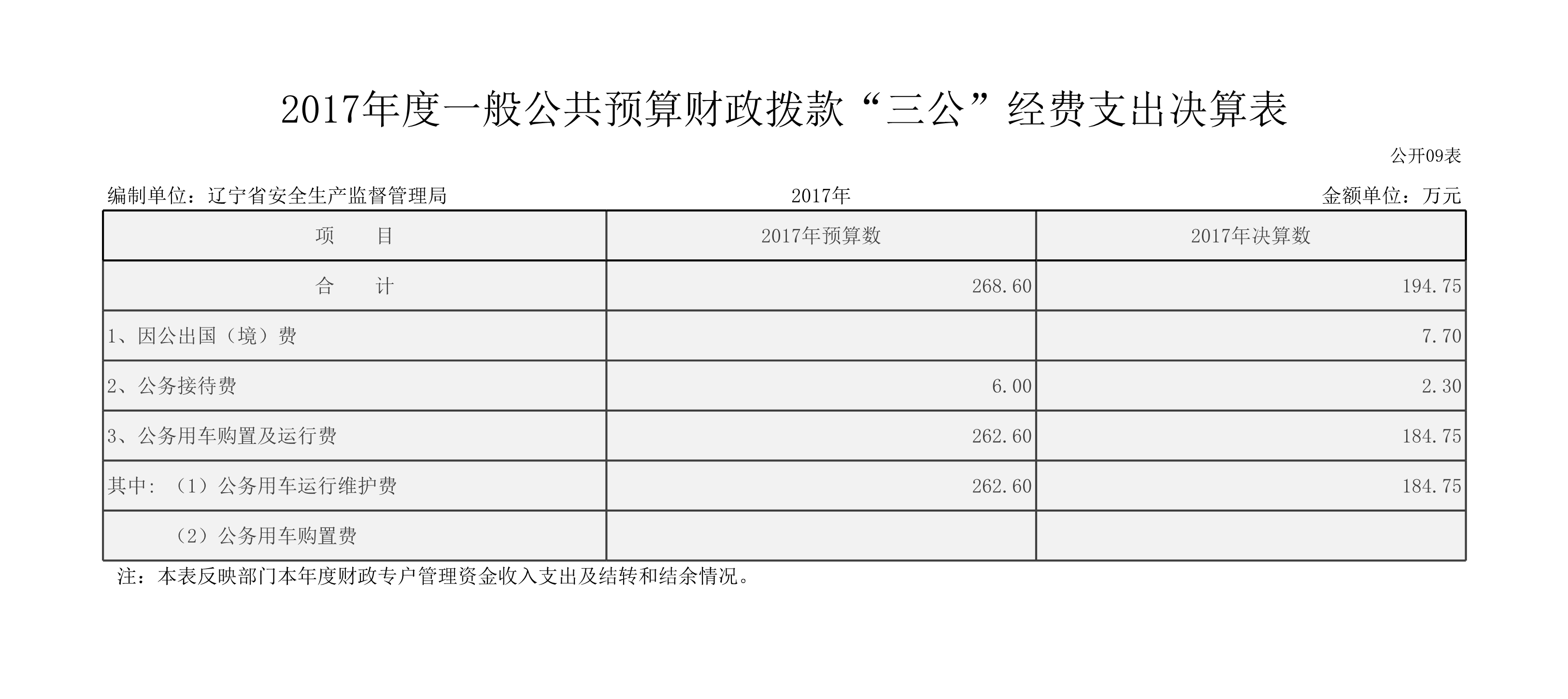 辽宁省安全生产监督管理局2017年度部门决算