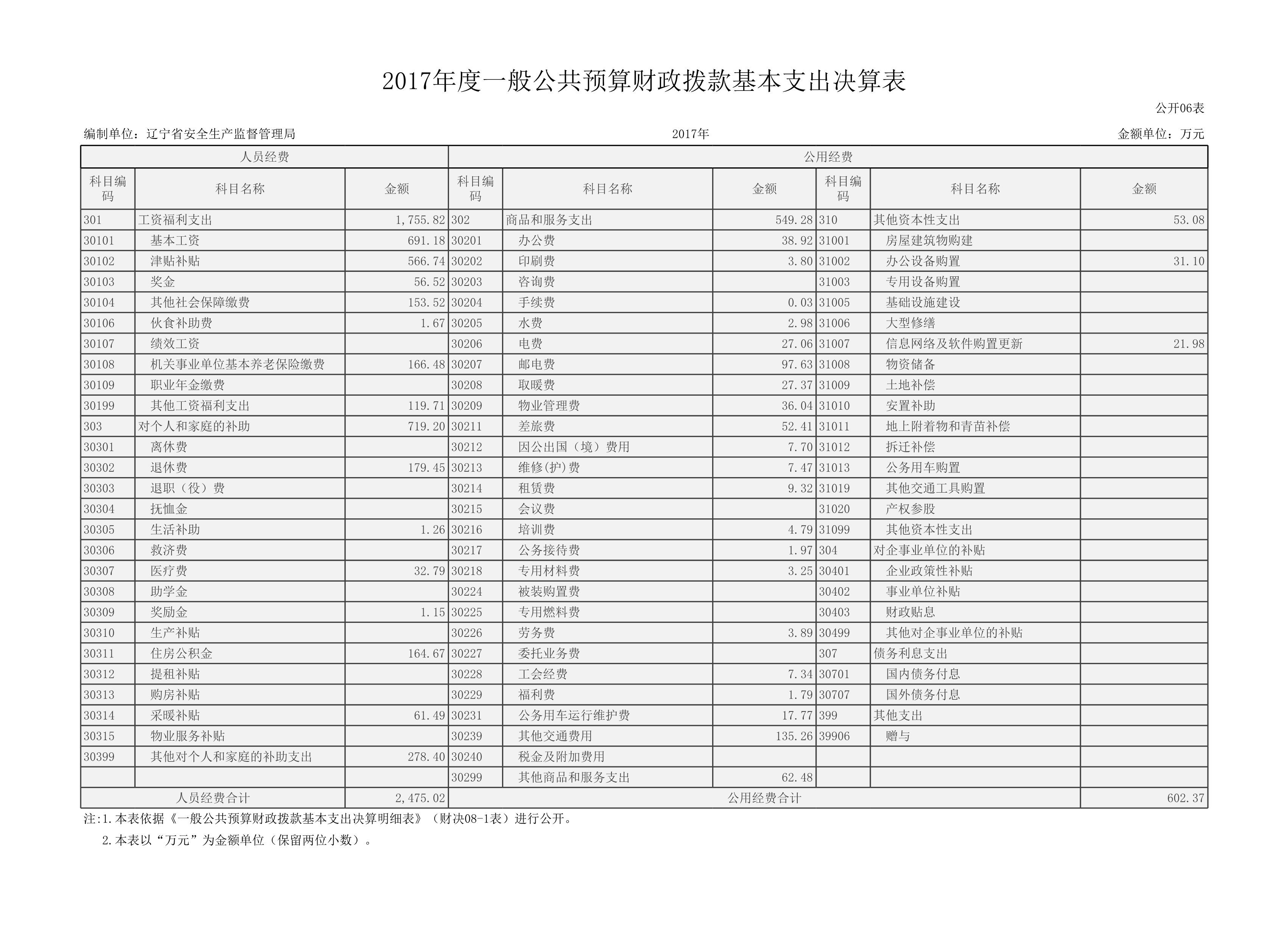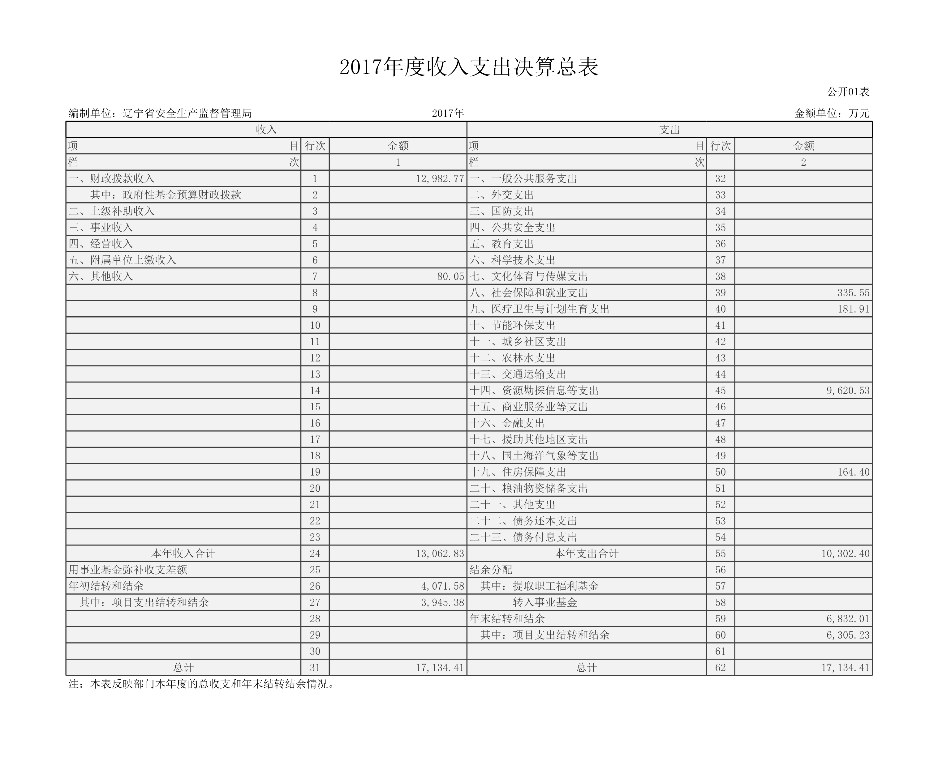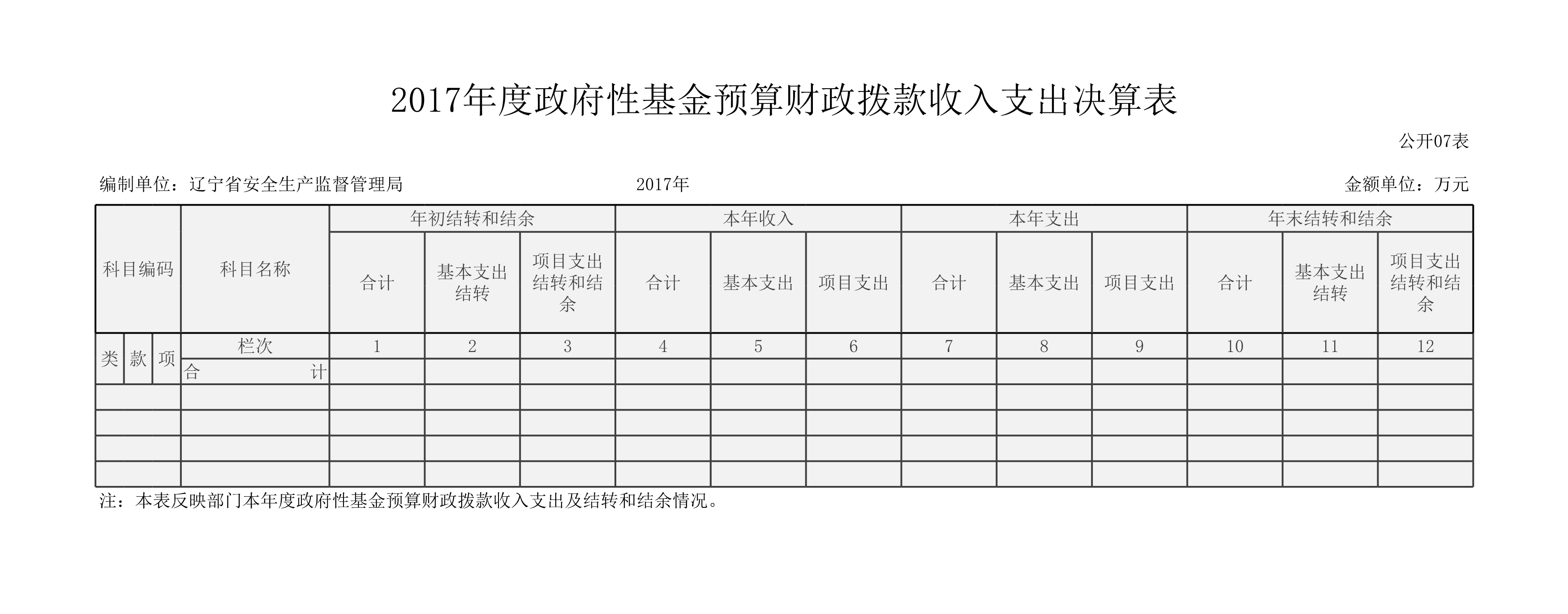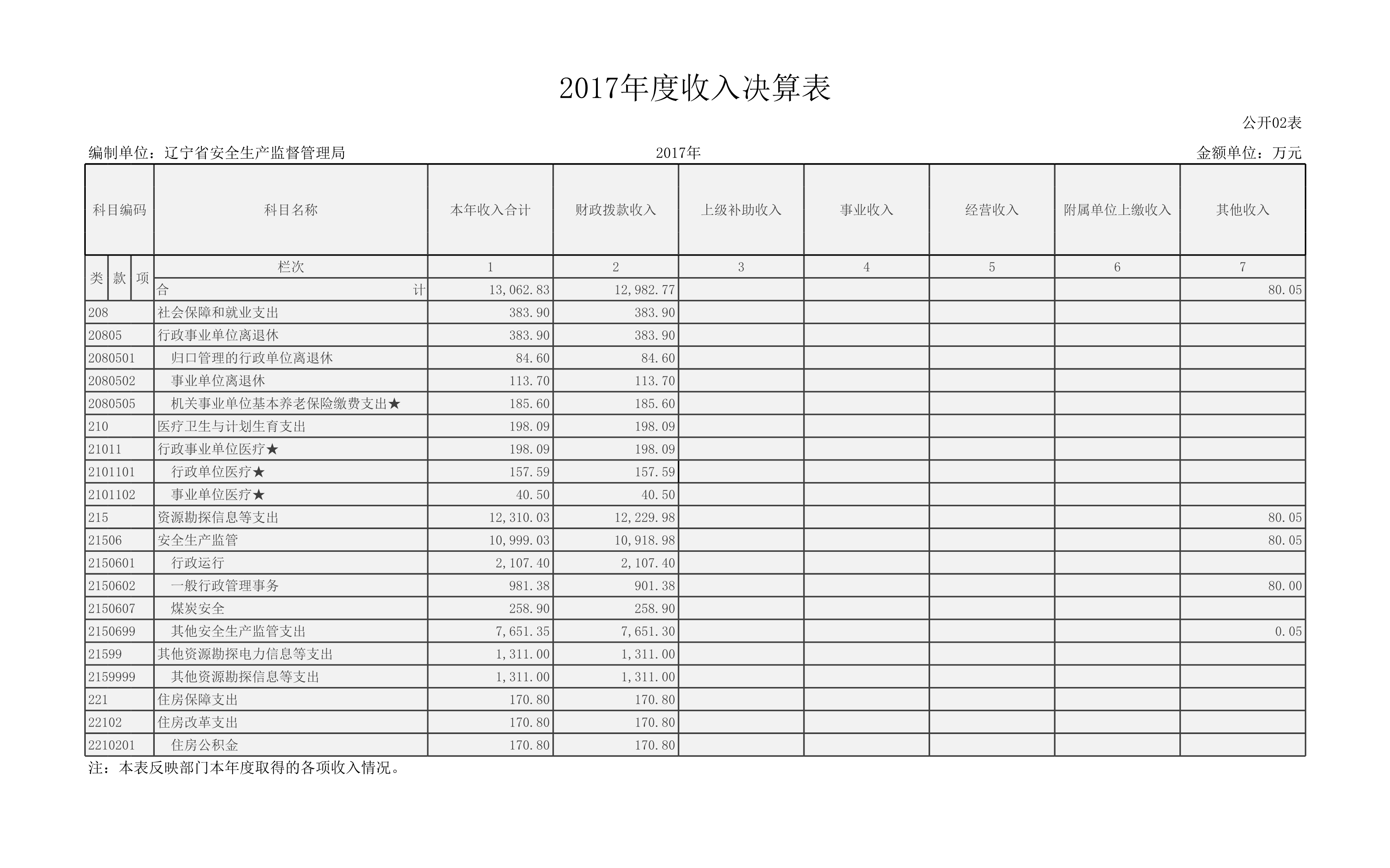 辽宁省安全生产监督管理局2017年度部门决算